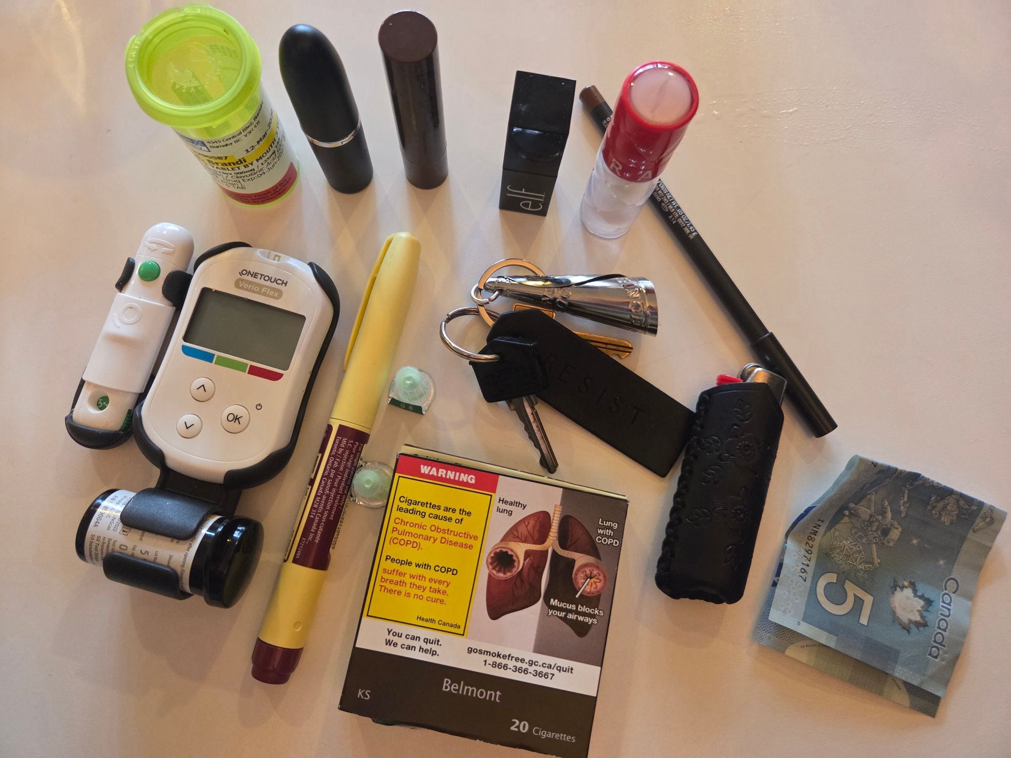 BB: In my black bag shaped like a small horse I named Pal(entine), there is: